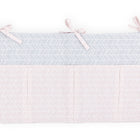 Uundværlig i plejen af din baby. Uanset om det er en drikkedunk, en sutte eller en bamse, er vores håndlavede sengetaske super praktisk og bestemt et stilfuldt blikfang på ethvert barneværelse. Og alt hvad dit barn har brug for, passer ind i de foldede lommer! Ydermaterialet er lavet af 100% bomuld, foret er lavet af hypoallergen polyester. En anden afgørende fordel ved vores værktøjskasse er de 3 robuste stropper, hvormed du kan fastgøre tasken til tremmesengen eller andre steder. Produktmål: 50 cm x 30 cm I vores butik finder du også andre stoffer og andre produkter, der matcher denne kollektion.