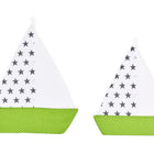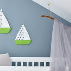 Sejlbådene er mellem 36 og 42 cm høje, er fremstillet i 100% bomuld på ydersiden og kan maskinvaskes. For at sikre, at de hænger stabilt og stift på væggen, er de yderligere forstærket indvendigt med let fleece. Indhold: 2 sejlbåde.