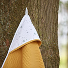 Wrapped in the KraftKids hooded towel, every child will feel comfortable long after bathing! Because our hooded towel is made from the highest quality terry cloth and is made from 100% cotton. It has a grammage of 500g/m2 and is therefore particularly soft and absorbent. We also made the outside of the hood from cotton fabric and finished it all around with a matching bias tape. The hooded towel measures 75x75cm and can be washed in the washing machine at up to 60 degrees.