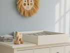 With the changing attachment from KraftKids, any HEMNES dresser can be transformed into a functional and comfortable changing station. The changing attachment is made of 18 mm thick chipboard, making it very sturdy and stable. To ensure your little treasure doesn't get hurt, all surfaces are completely smooth. The corners are child-friendly rounded and 10 cm high at the highest point. Additionally, we have curved the back side, which makes the attachment look very elegant and special. The changing attachment is coated with harmless laminate (hygiene certificate available). And when your little one no longer needs diapers, the changing attachment can be easily removed. The delivery includes all necessary screws, accessories, and assembly instructions.