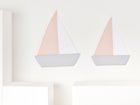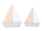 The sailboats are between 36 and 42 cm in size, made on the outside of 100% cotton, and are machine washable. To ensure they hang stable and stiff on the wall, they are additionally reinforced on the inside with a light fleece. Contents: 2 sailboats.