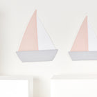 Les voiliers mesurent entre 36 et 42 cm, sont en 100% coton à l'extérieur et peuvent être lavés en machine. Ils sont en outre renforcés à l'intérieur avec un molleton léger afin qu'ils soient suspendus de manière stable et rigide au mur. Contenu : 2 voiliers.